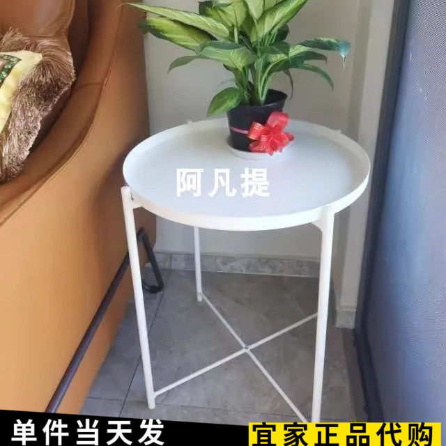 宜家格拉登托盘桌茶几边桌圆形沙发咖啡馆阳台小桌子紫色国内代购