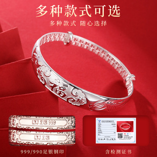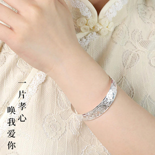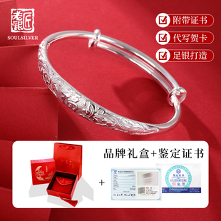 老银匠纯银手镯妈妈款 奶奶母亲节礼物百福长辈s999足银镯子 老人款