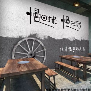 欧式 墙纸咖啡餐厅壁纸创意木板纹字母酒吧ktv壁画 复古3d立体个性