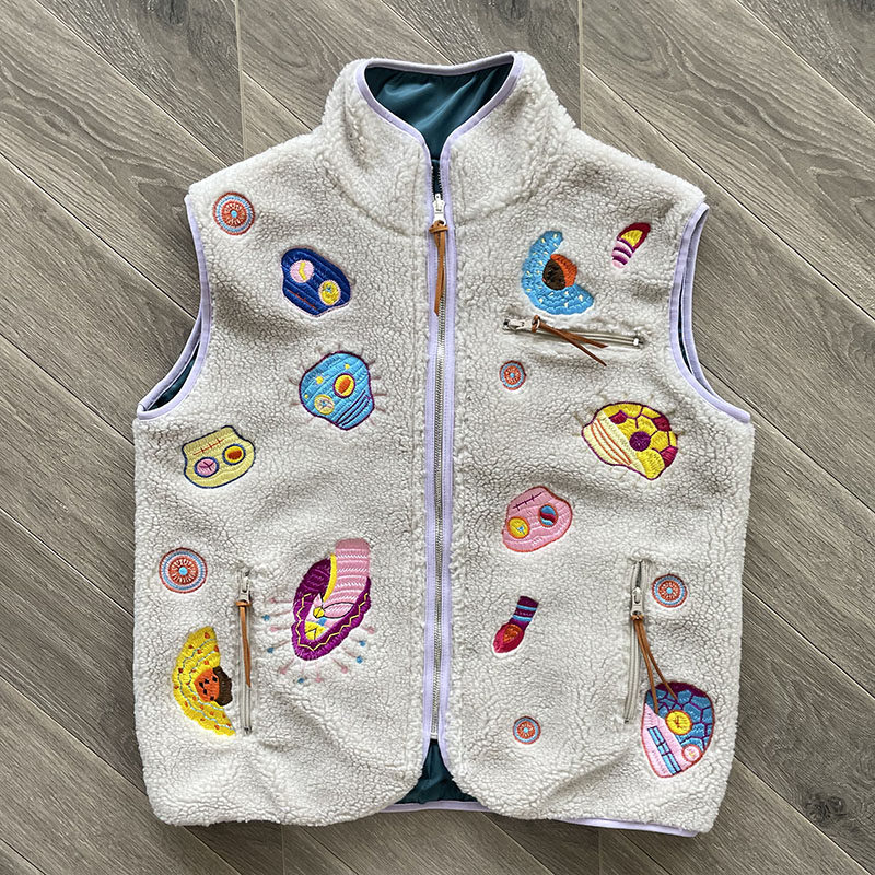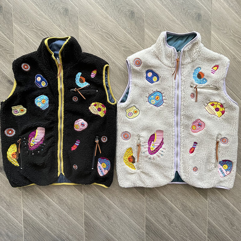 Embrideried Skull 羊羔绒刺绣两面穿马甲背心 Kountry Kapital