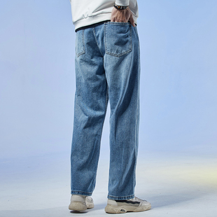 长裤 FUNKYFUN 复古蓝色洗水马骝直筒宽松中腰秋冬加绒牛仔裤