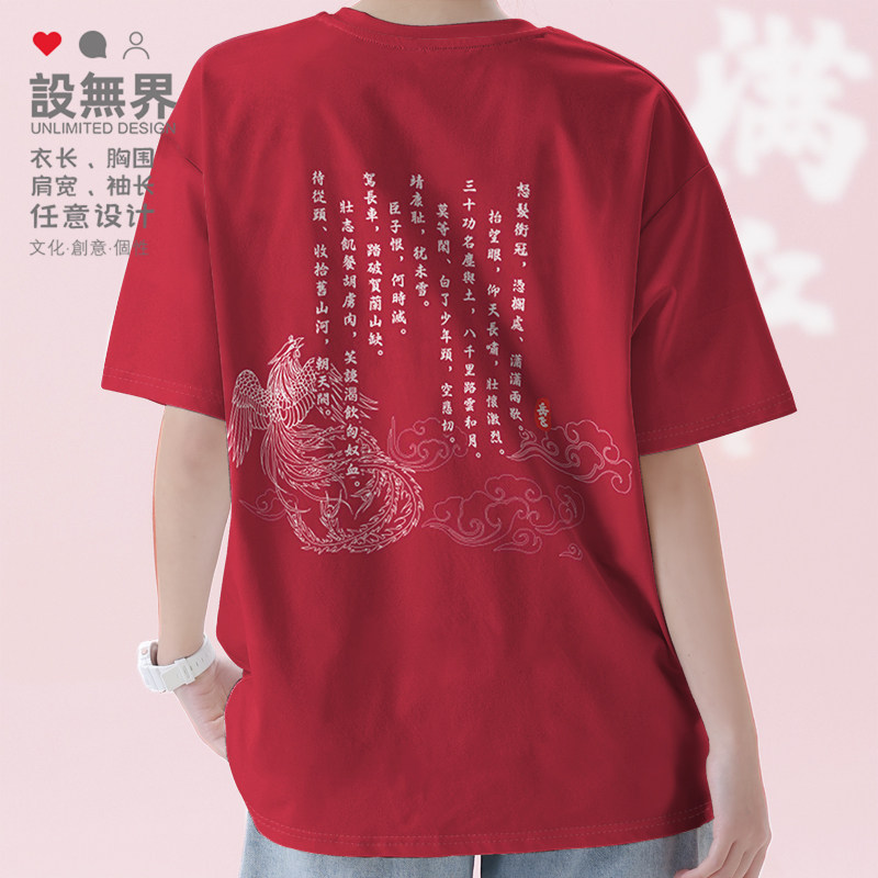 古诗词岳飞满江红写怀中国风短袖 无界 T恤男女纯棉休闲学生体恤设