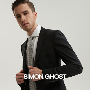 GHOST羊毛西服套装 婚礼新郎灰色西装 男士 黑色修身 商务正装 SIMON