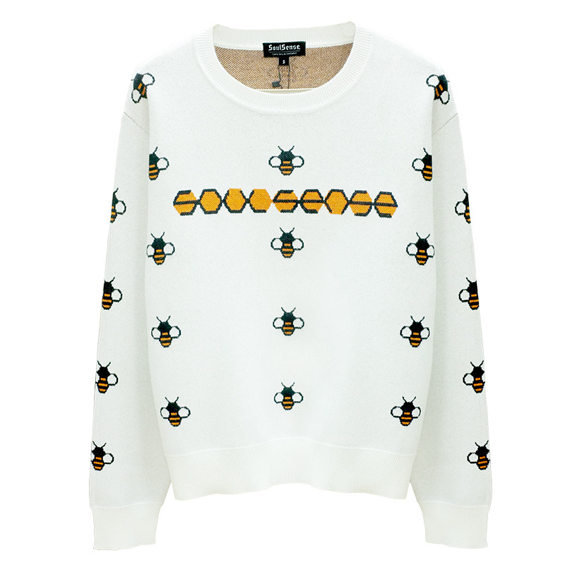 SoulSense潮牌男女同款 毛衣男 国潮休闲宽松动物系列Bee蜜蜂针织衫