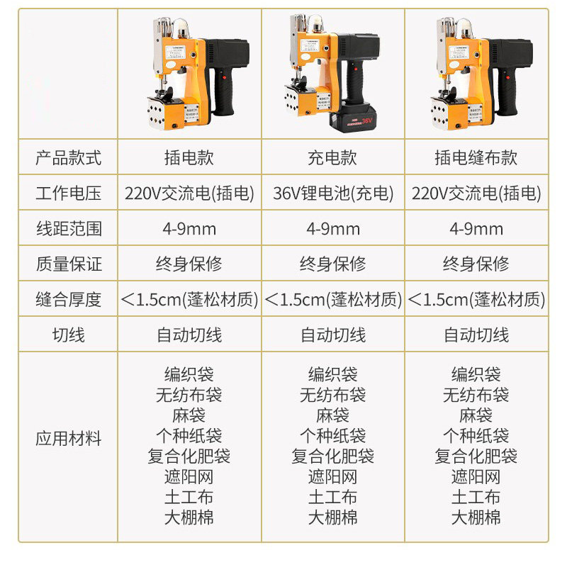 枪式 充电编织袋封口机小型米袋封包机打包机 飞人牌缝包机手提式
