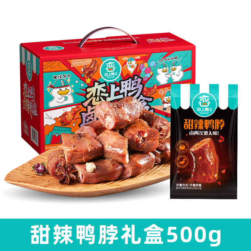 恋上鸭礼盒甜辣鸭脖子鸭翅鸭锁骨麻辣整箱鸭架翅根鸭掌爪散装 500g