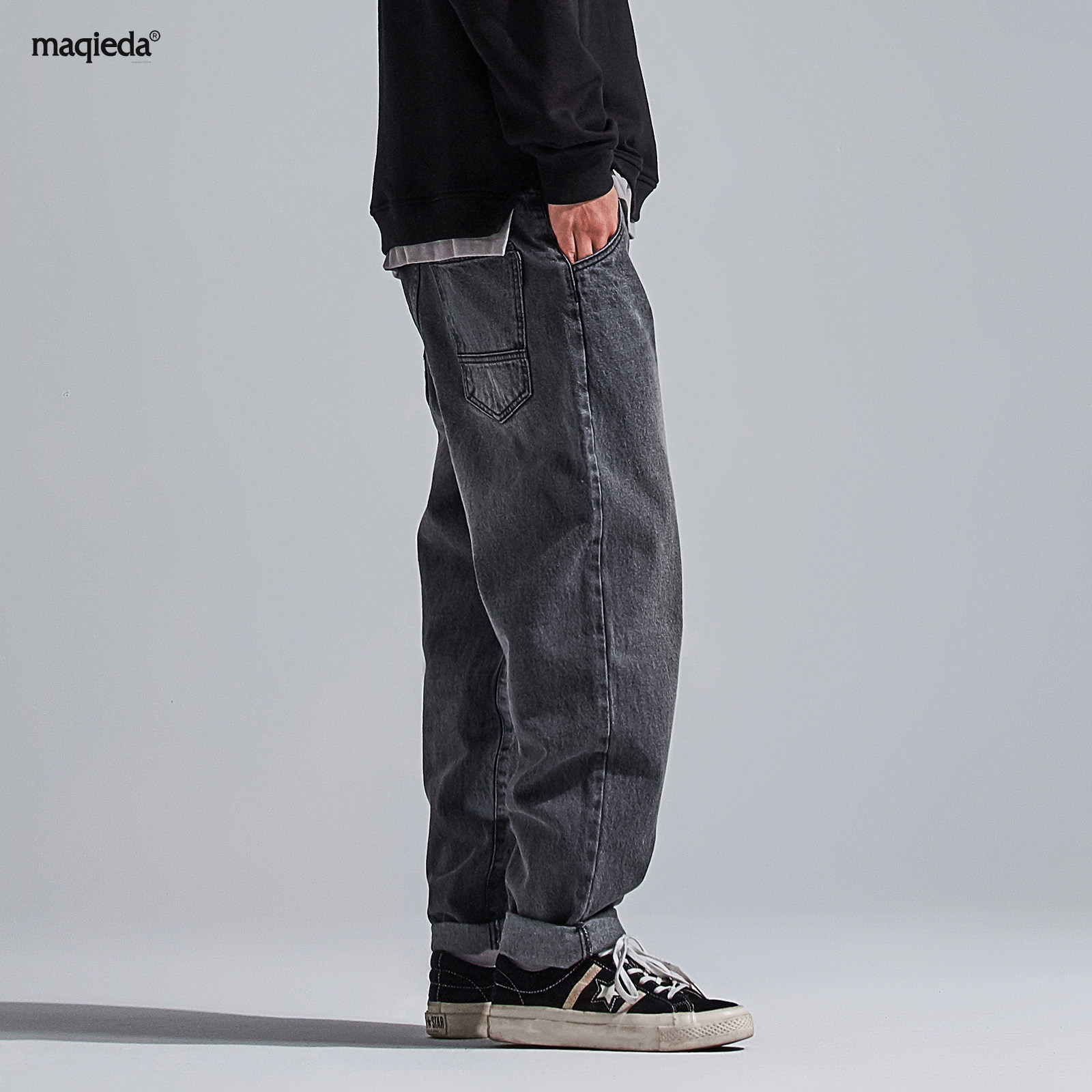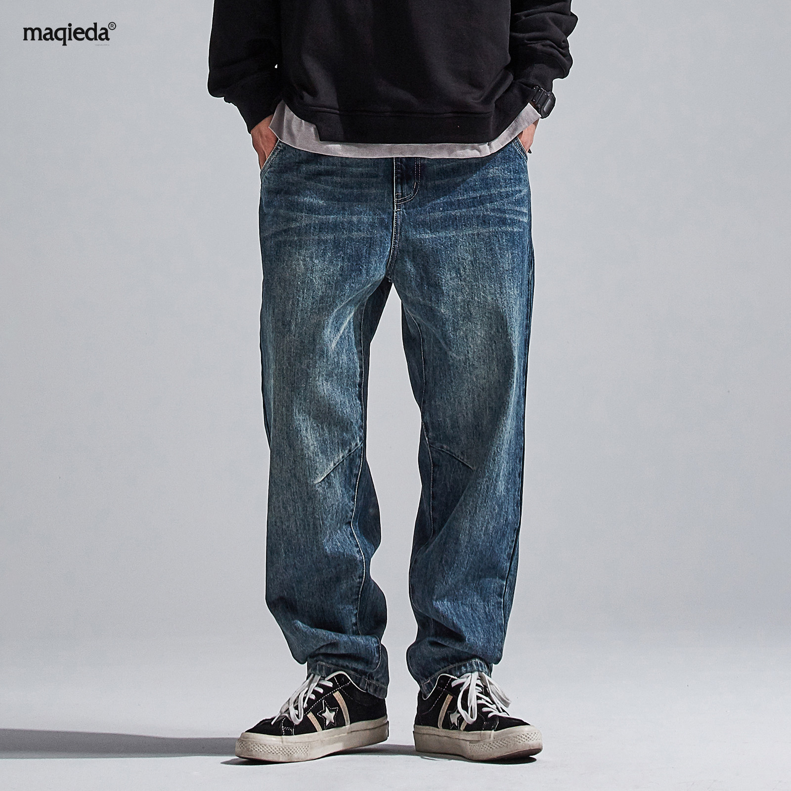 复古vintage宽松A字裤 美式 男女秋季 NEVERNEED水洗做旧直筒牛仔裤