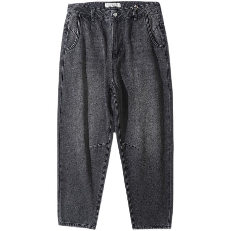 复古cleanfit宽松微喇裤 美式 男秋季 NEVERNEED解构拼接直筒牛仔裤