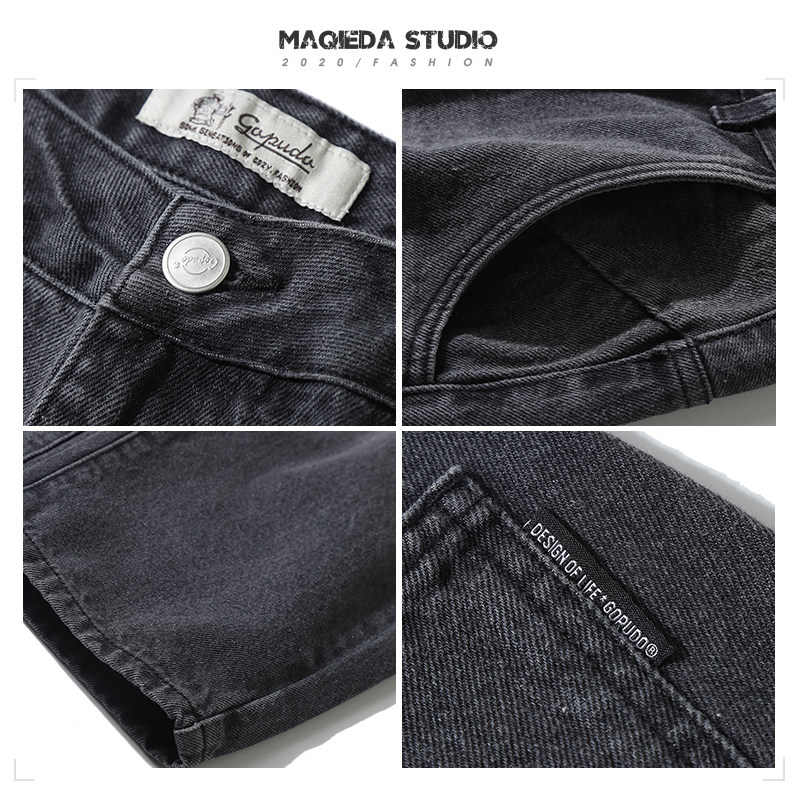 潮牌宽松休闲水洗微喇裤 美式 男秋季 NEVERNEED解构拼接直筒牛仔裤