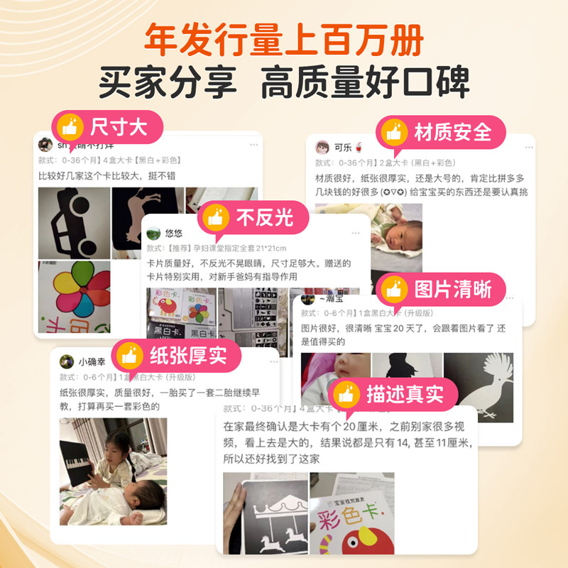 海润阳光 0到3个月追视闪卡视觉激发卡宝宝启蒙益智玩具激发宝宝认知能力与追视能力手眼协调能力 新生儿黑白卡片婴儿早教卡彩色卡