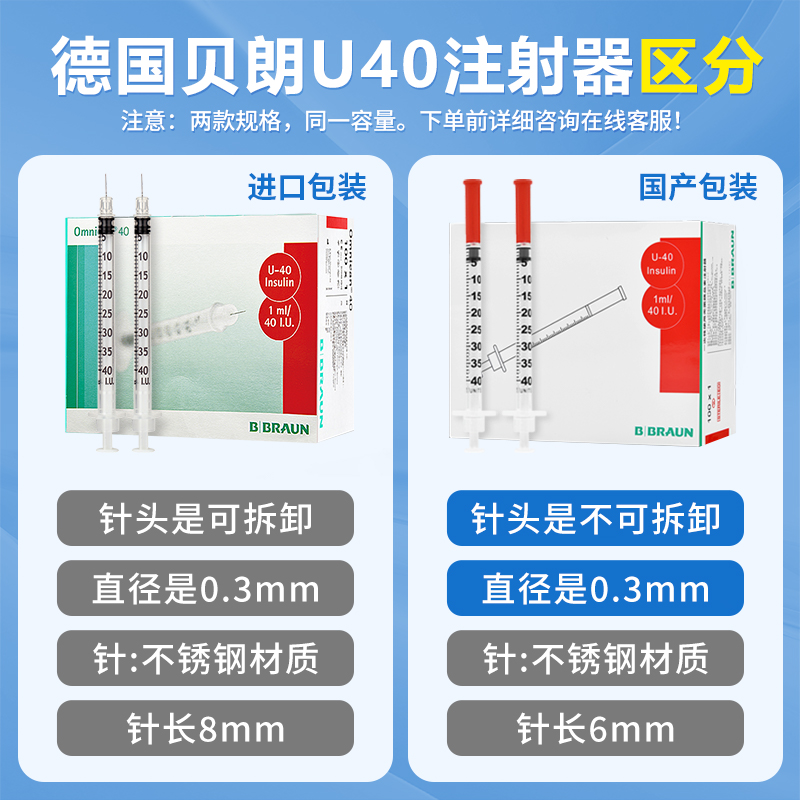 德国贝朗U40一次性无菌胰岛素注射器笔1ml糖尿病针头8mm针器针管