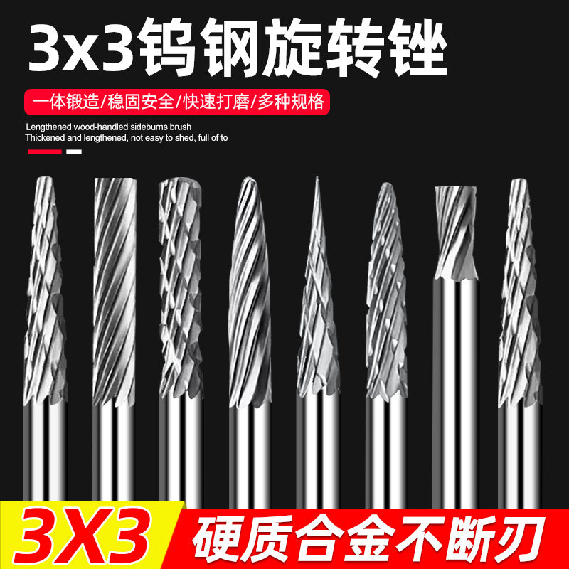 钨钢硬质合金旋转锉铣刀钨钢磨头金属打磨头钨钢打磨头 铣刀3x3mm
