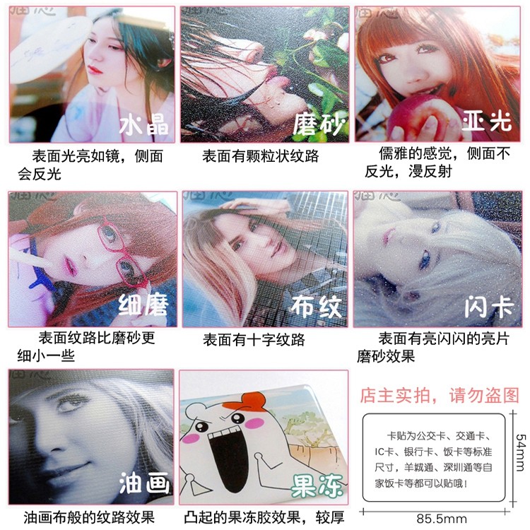 闪卡diy磨砂水晶照片贴纸公交校园饭卡 动漫卡贴定做定制个性 包邮