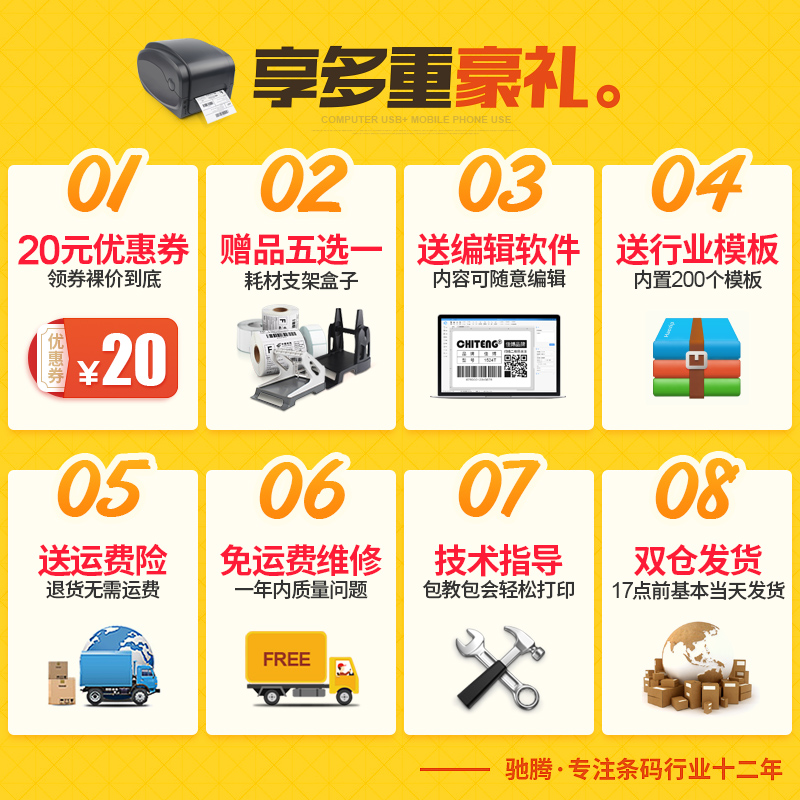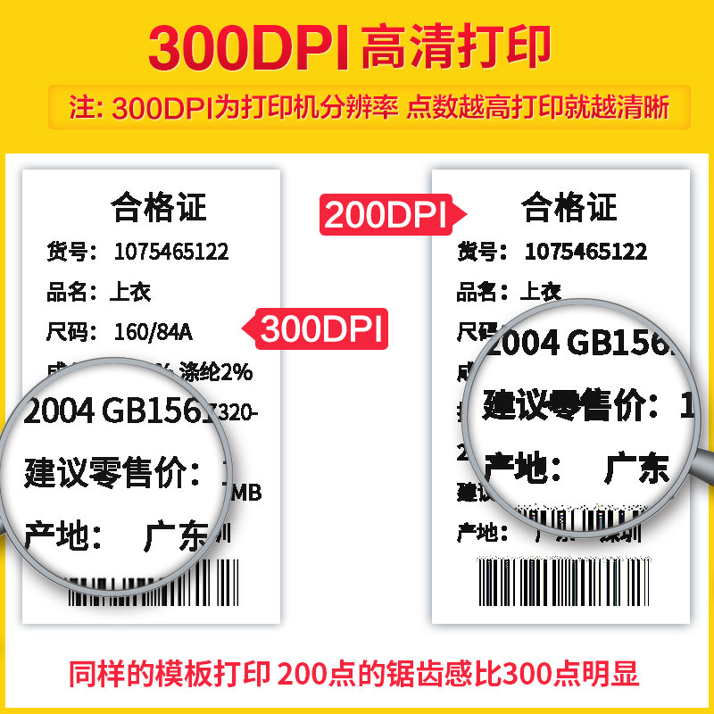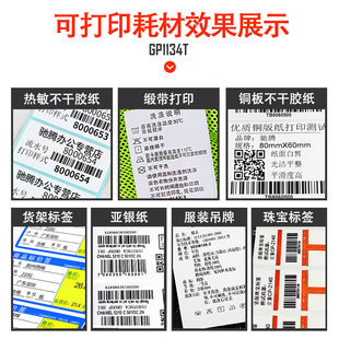 不干胶吊牌缎带水洗唛呢龙标签 E邮宝速卖通亚马逊快递热敏电子面单服装 佳博GP1134T条码 热转印打印机300DPI