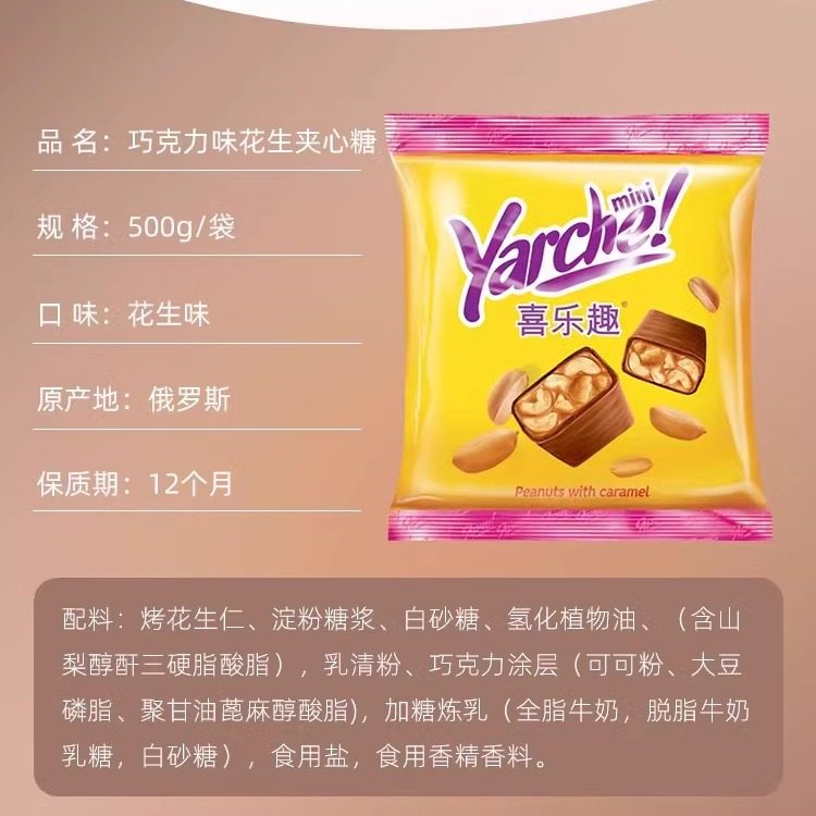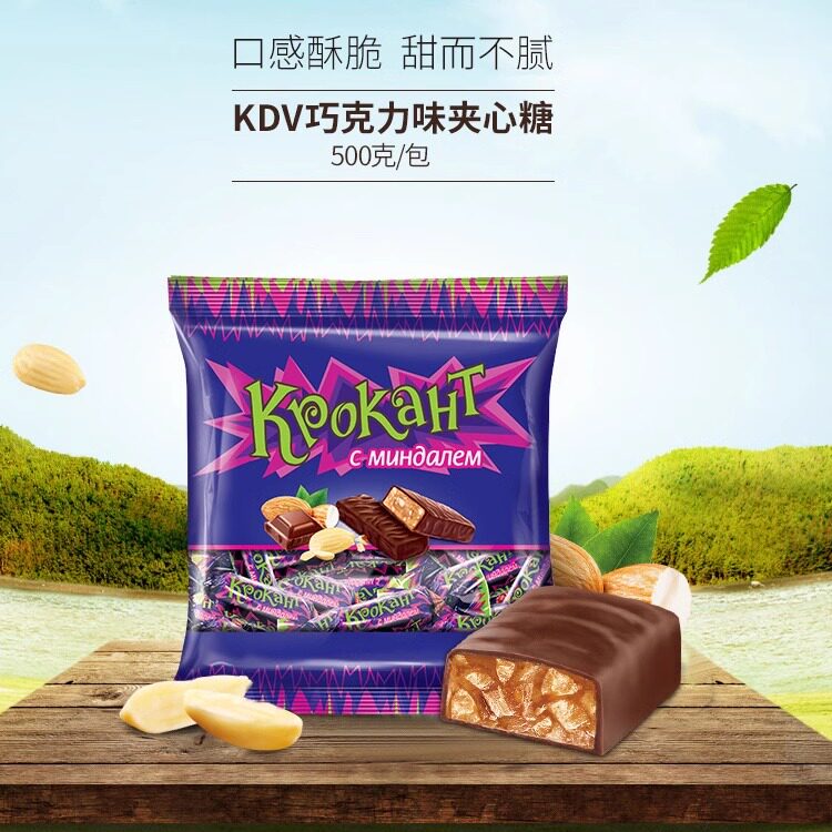 俄罗斯进口黄花生夹心巧克力kdv喜糖果500g休闲小零食品年货 包邮