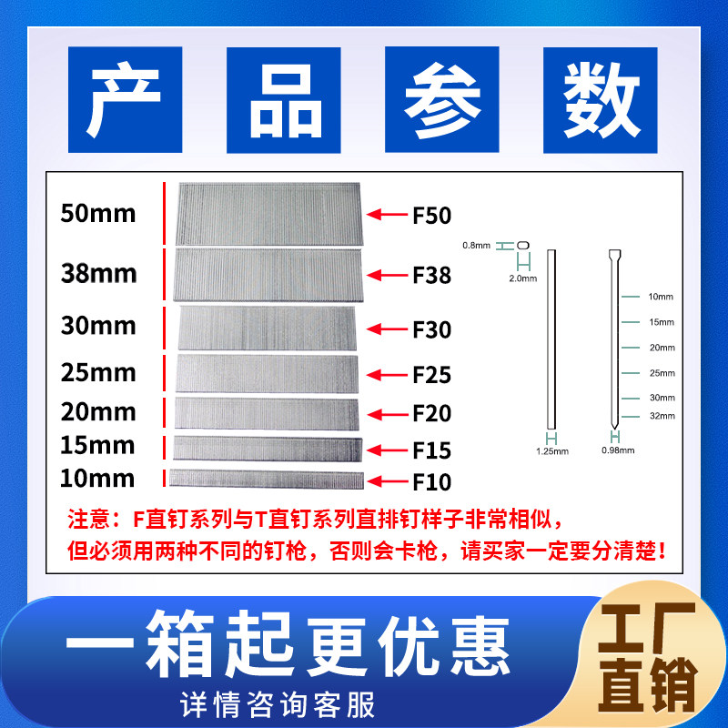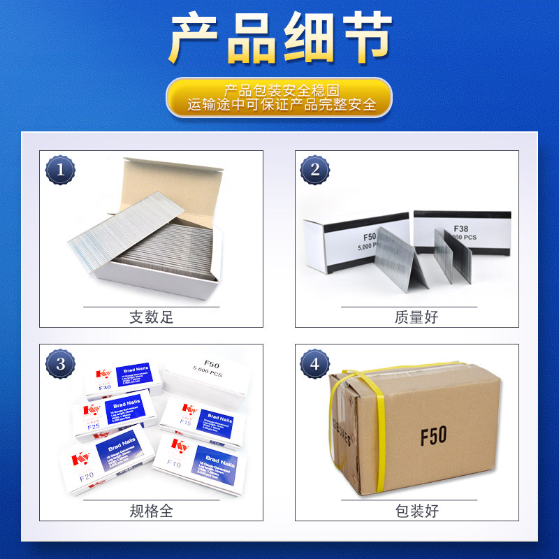 ky气动直排钉镀锌枪钉家具木工装 潢沙发汽钉F32F38F40F45F50F直钉