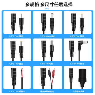 0.7 2.1mm母座转2.5 3.5 1.35 1.7mm公圆头圆孔鳄鱼夹点烟器直流转换插头线 景赛 4.0 dc电源适配器转换线5.5