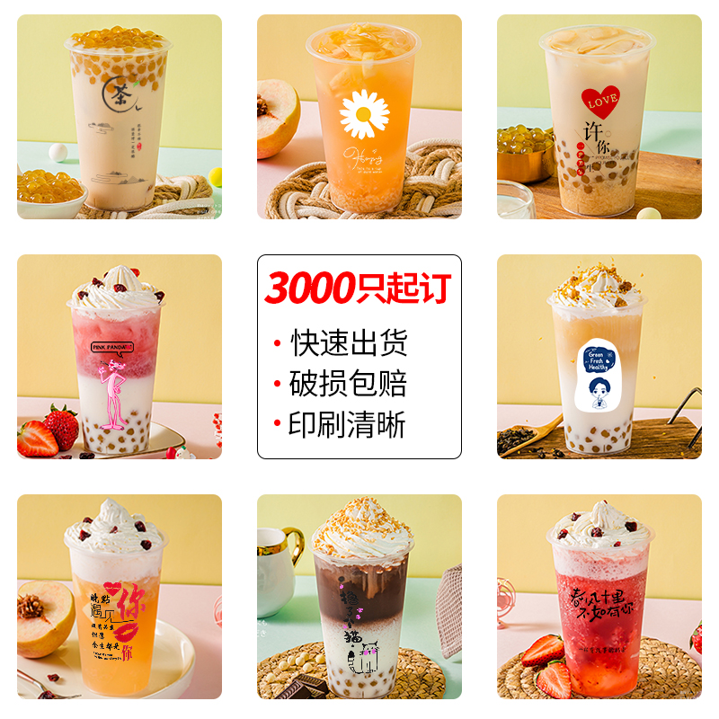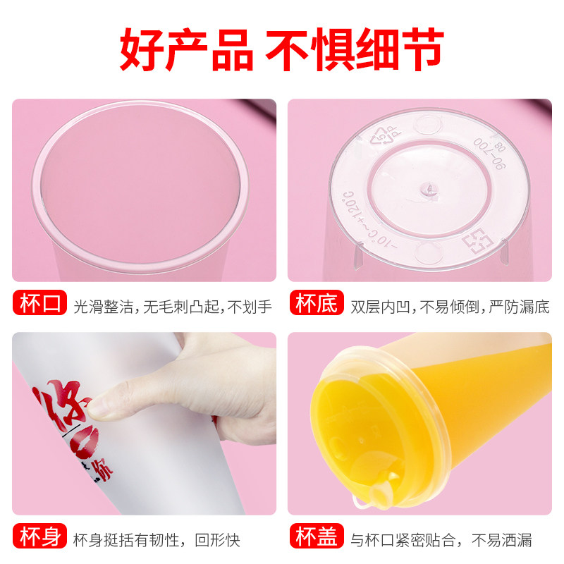 90口径磨砂注塑杯500ml700ml带盖果汁杯一次性奶茶杯子商用定制
