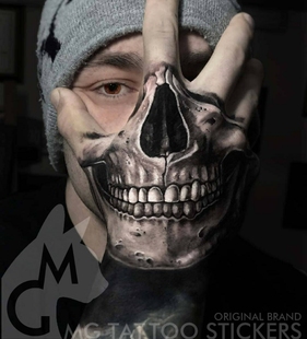 骷髅头图案手背个性 欧美花手骷髅士 创意纹身贴纸男 TATTOO