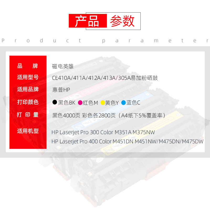 451dw 磁电英雄适用惠普CE410A硒鼓m351 m451nw M451dn墨盒m475dw M475dn打印机硒鼓hp305a粉盒易加粉 M375nw