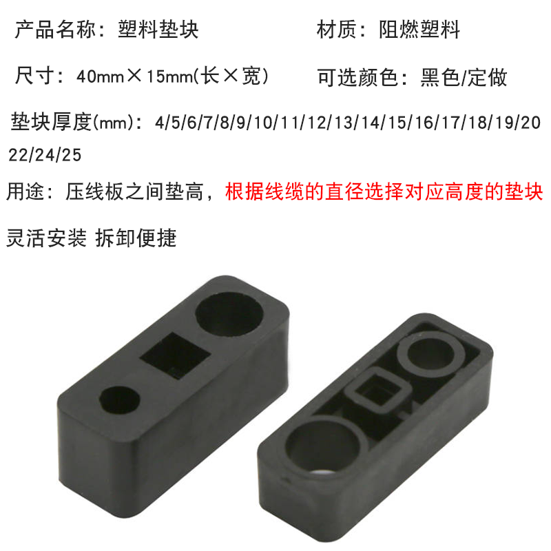 动力固线器垫块ABS阻燃压线板增高垫块线缆理线板垫片网线压片电源固定器黑色胶垫机房机柜布线夹综合布线