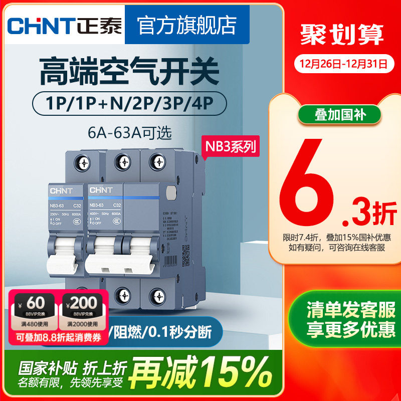 正泰空气开关家用NB3漏保断路器63A总空开空调带漏电保护32A