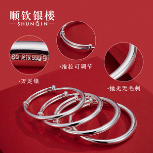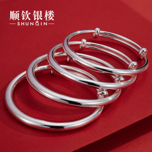 顺钦银楼S9999纯银手镯女宝宝银手镯光面传承亲子款 满月周岁礼物