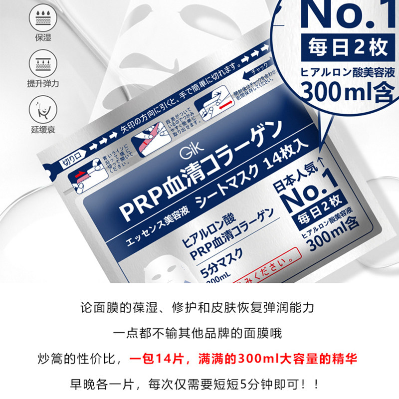 日本GIK 提升弹力 PRP血清胶原蛋白面膜快速补水舒缓就发保湿