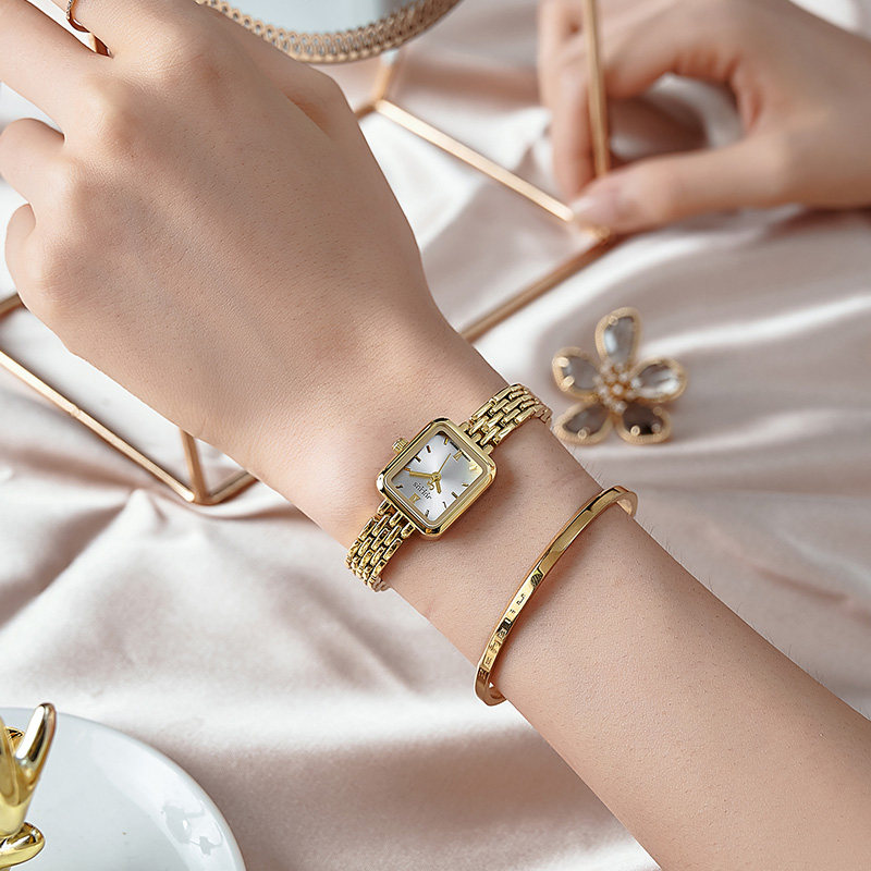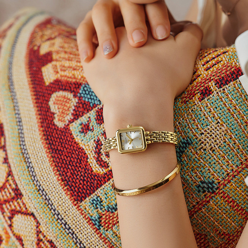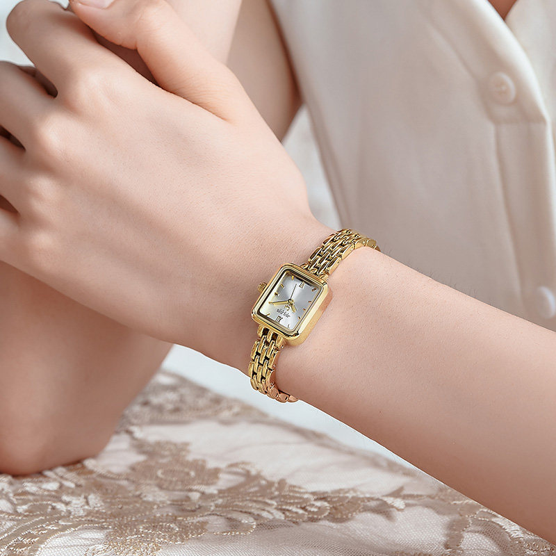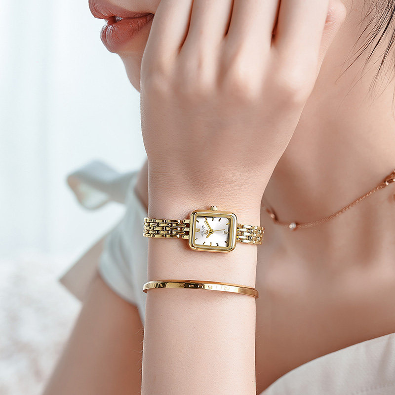 julius聚利时女士正品 手表复古学生简约气质钢链带防水方形表 韩版