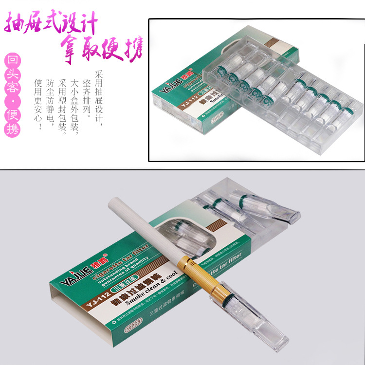 正牌雅爵烟嘴YJ 粗支专用 112抛弃型一次性滤珠三重过滤240支装