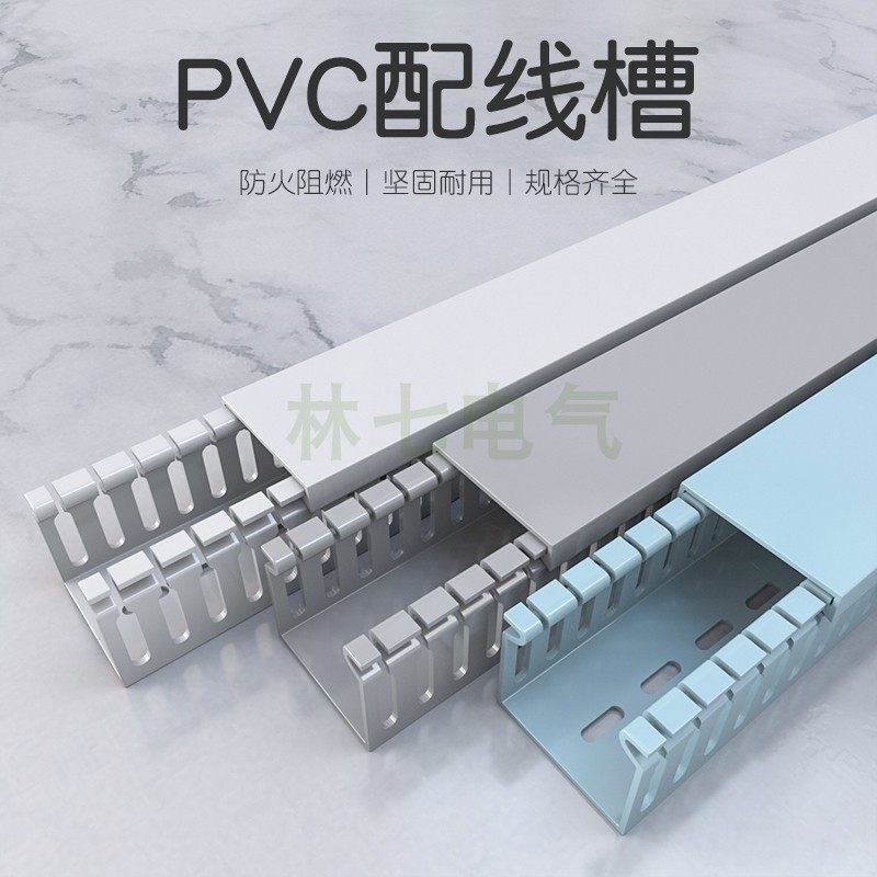 阻燃绝缘PVC灰蓝白开口工业行走配线槽电箱电柜明装 理线槽253040