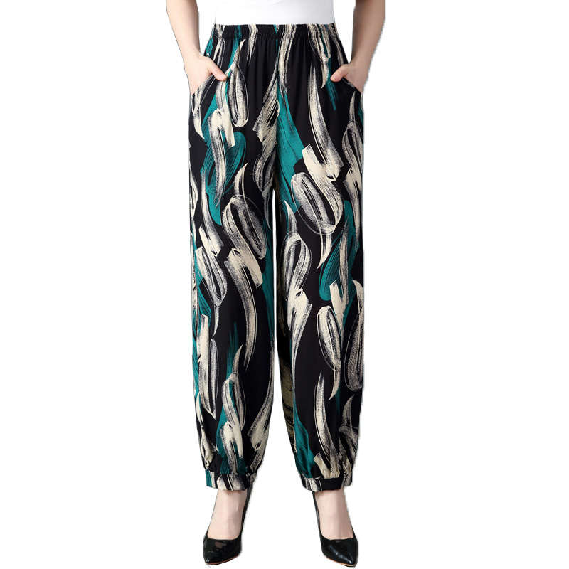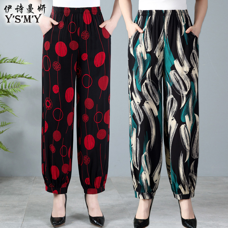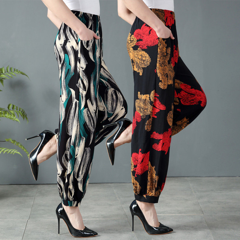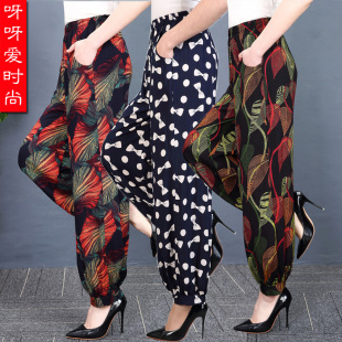 休闲民族风广场舞蹈女长裤 宽松棉绸阔腿灯笼裤 大码 春夏中老年女裤