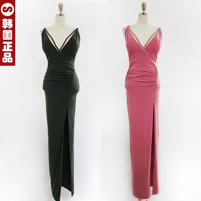 韩国代购 吊带开叉长裙夜场宴会 性感连衣裙名媛晚礼服包臀聚会时尚