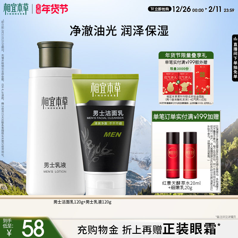 相宜本草男士 清爽补水润肤缓解干燥清透不粘腻改善粗糙 乳液保湿