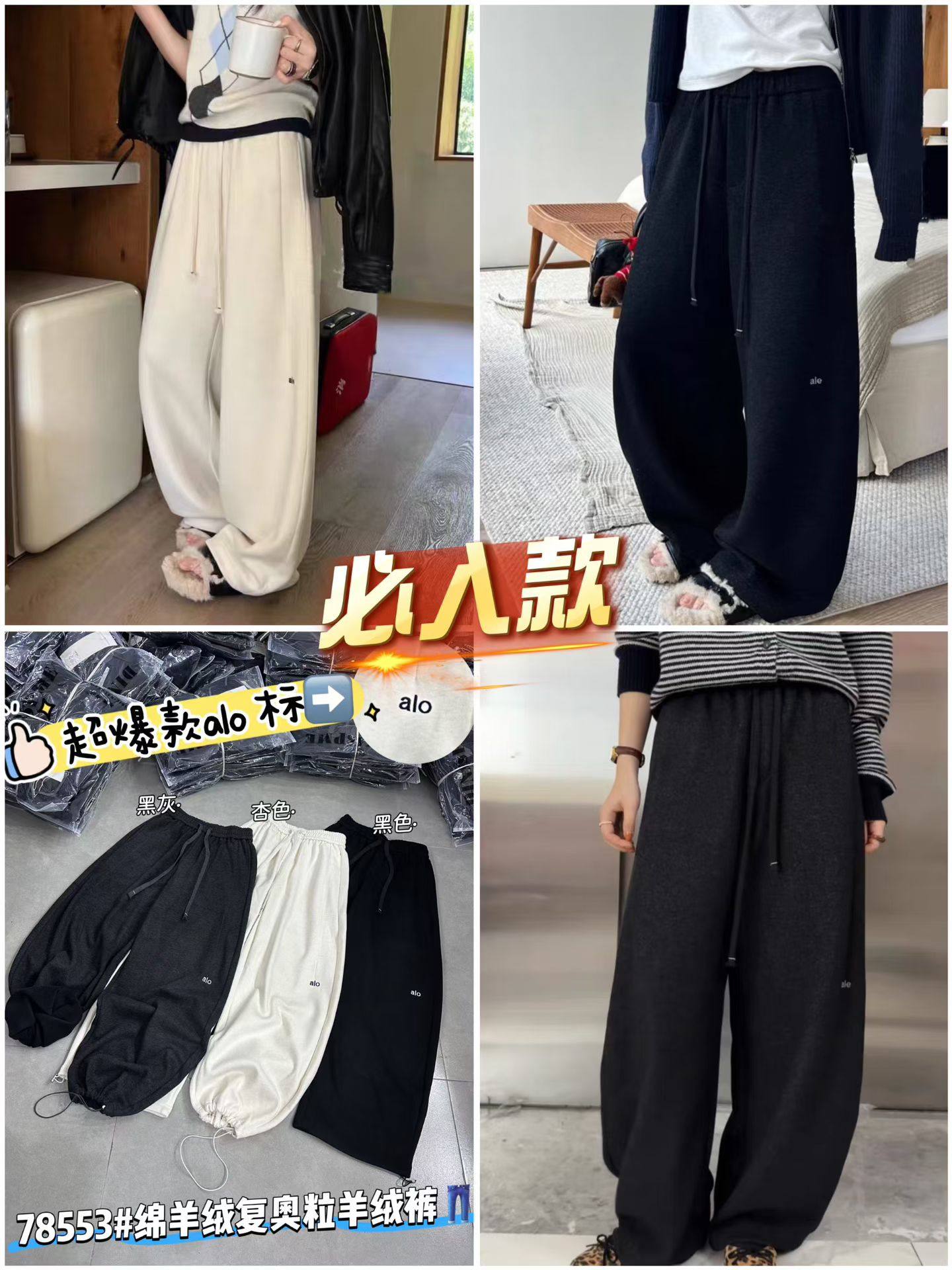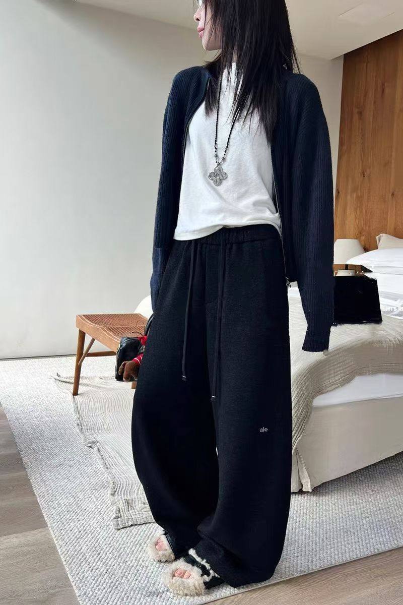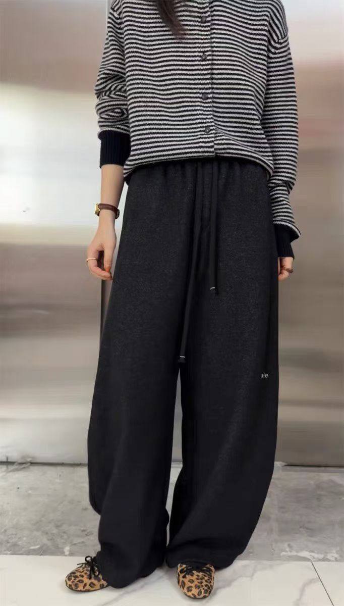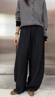 女宽松显瘦阔腿弯刀裤 25秋冬羊绒新款 加绒加厚松紧腰抽绳休闲裤