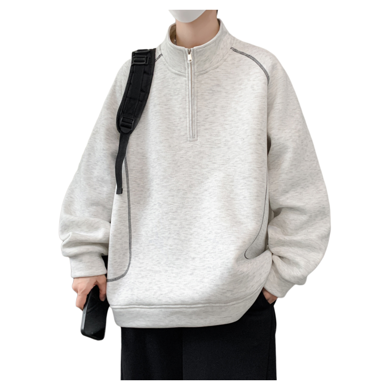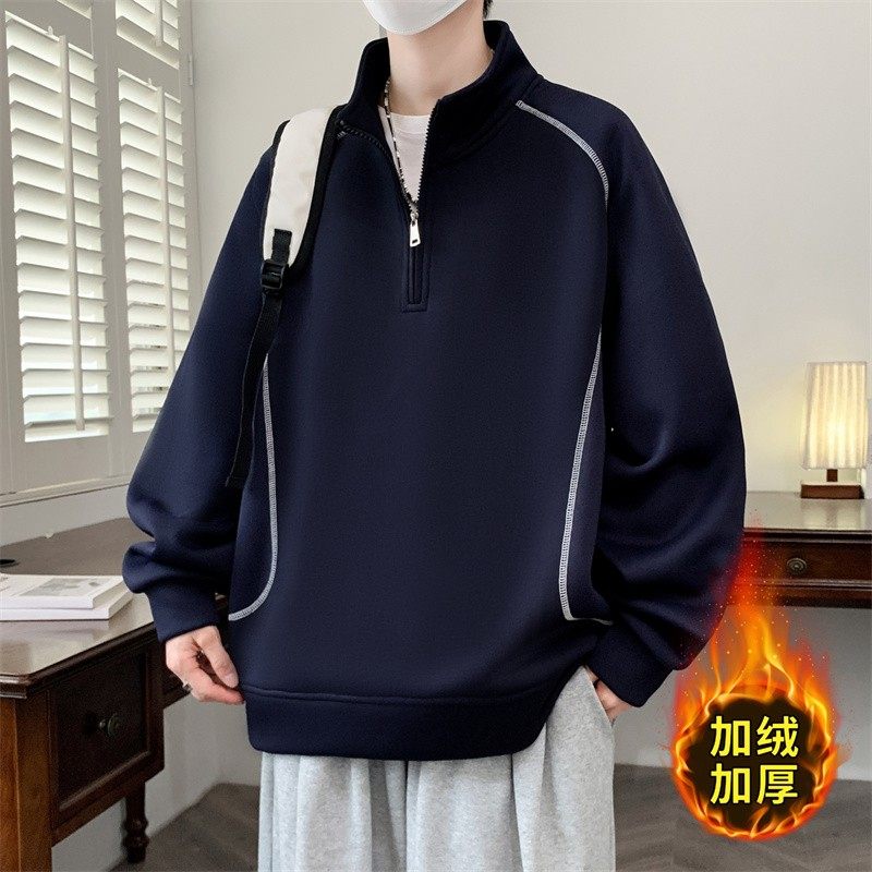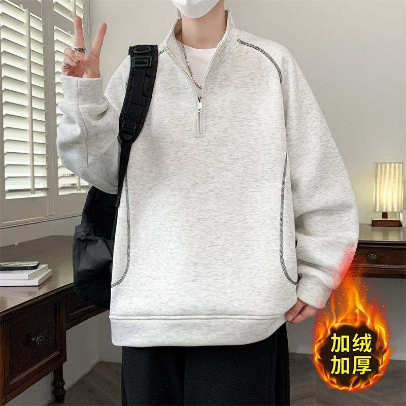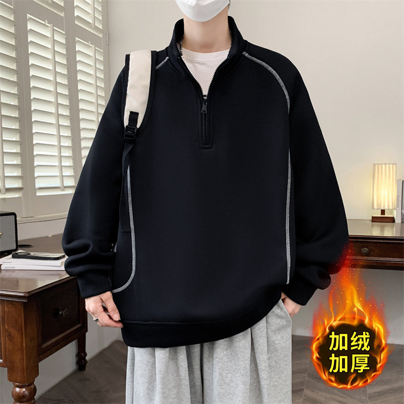 外套男装 休闲半高领美式 保暖上衣服潮 新款 卫衣男生加绒加厚秋冬季