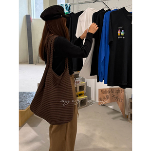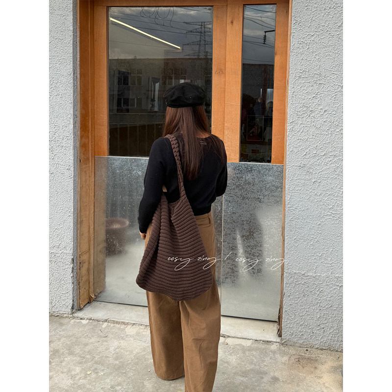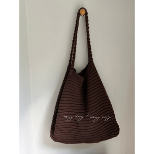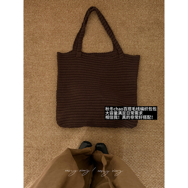 棕色毛线编织针织包大容量托特单肩包 包包女秋冬新款 cosy zing