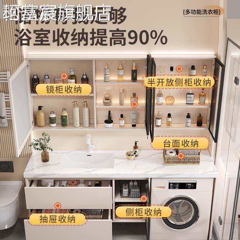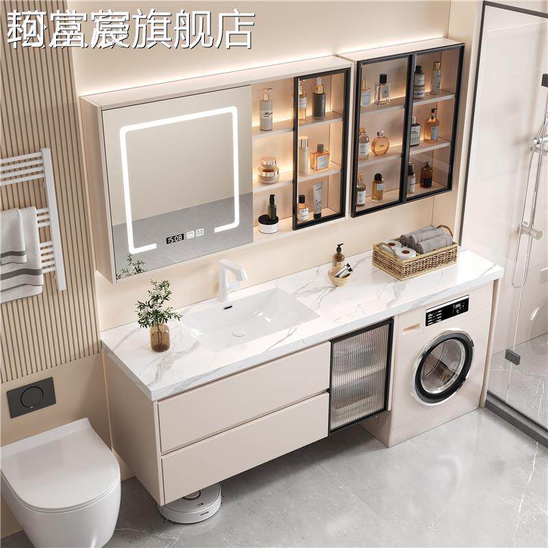 珂富宸现代简约洗衣机阳台一体 柜卫生间洗漱台洗手台盆摆件饰品床笠拉车盖布 柜组合无缝盆浴室