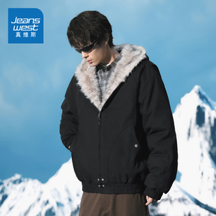 NOFUNNULL 秋冬座山雕加厚棉衣男复古解构高级感毛领保暖棉服外套