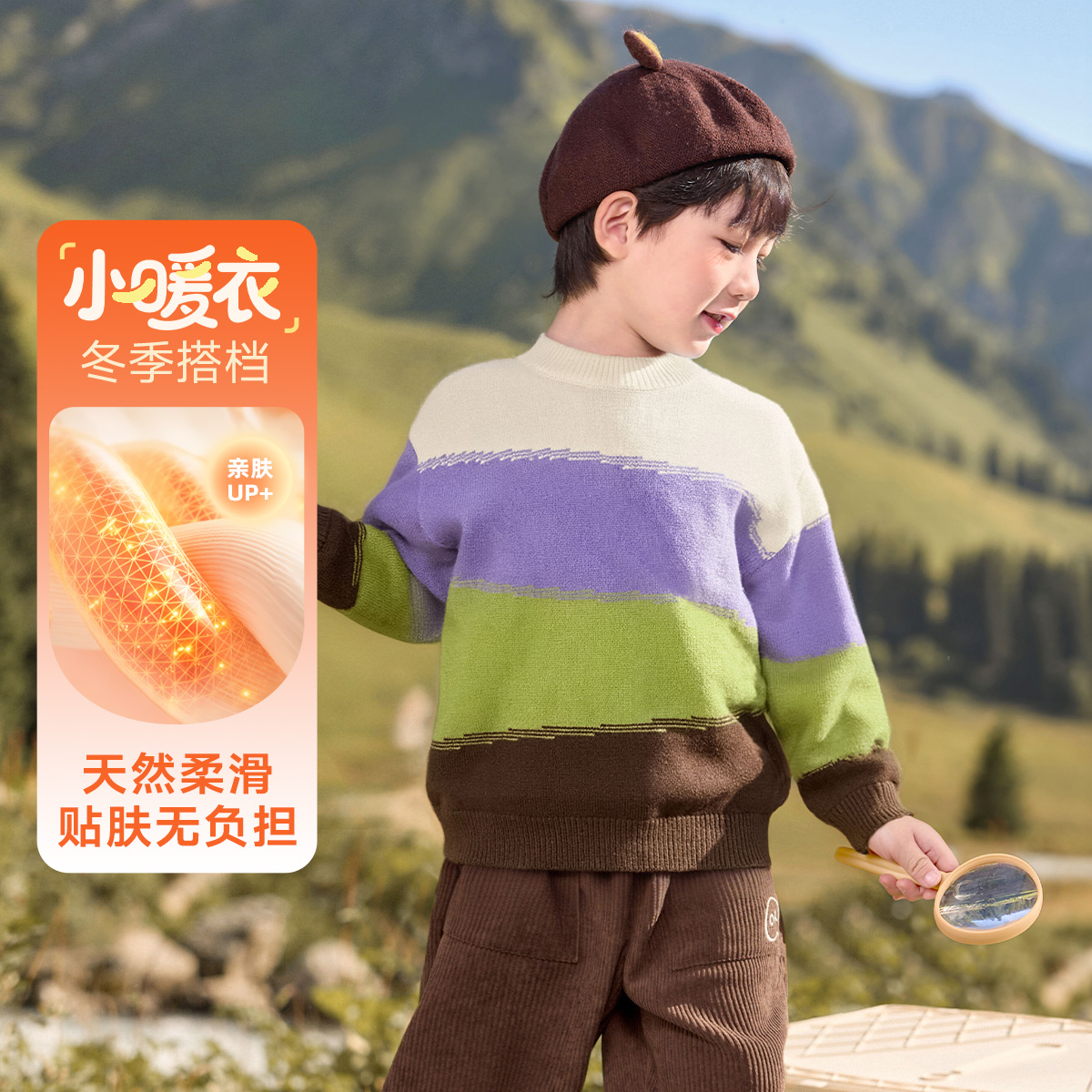 儿童童装 男童冬季 保暖圆领毛衣男孩加厚百搭上衣宝宝衣服防风冬装