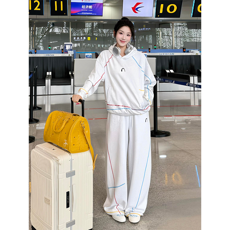 跑步两件套 女炸街连帽拼接卫衣卫裤 宽松美式 少年感休闲运动服套装