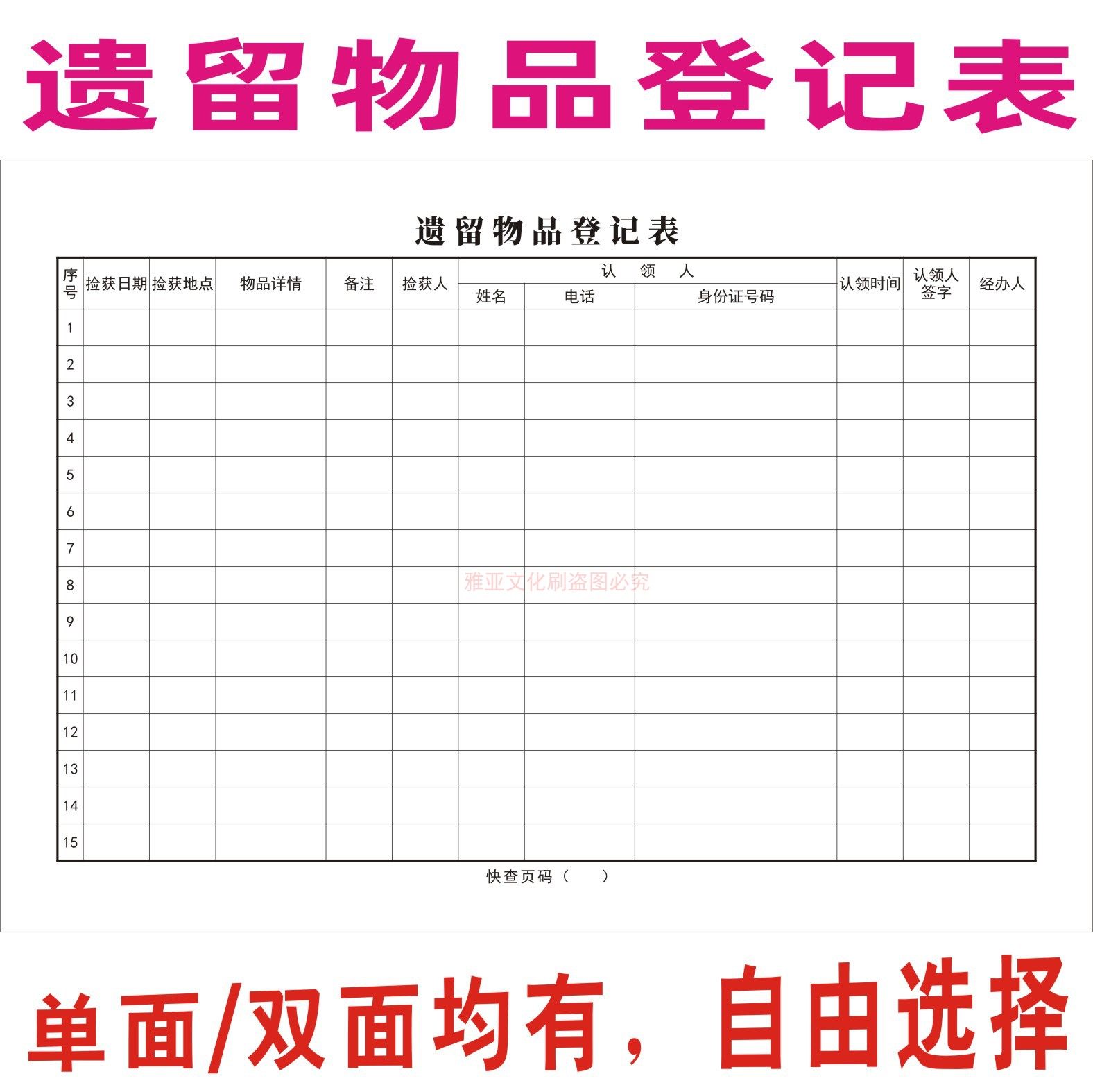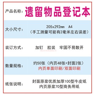 遗留物品登记本游客旅客旅社宾馆顾客景区东西保管交接记录册定制