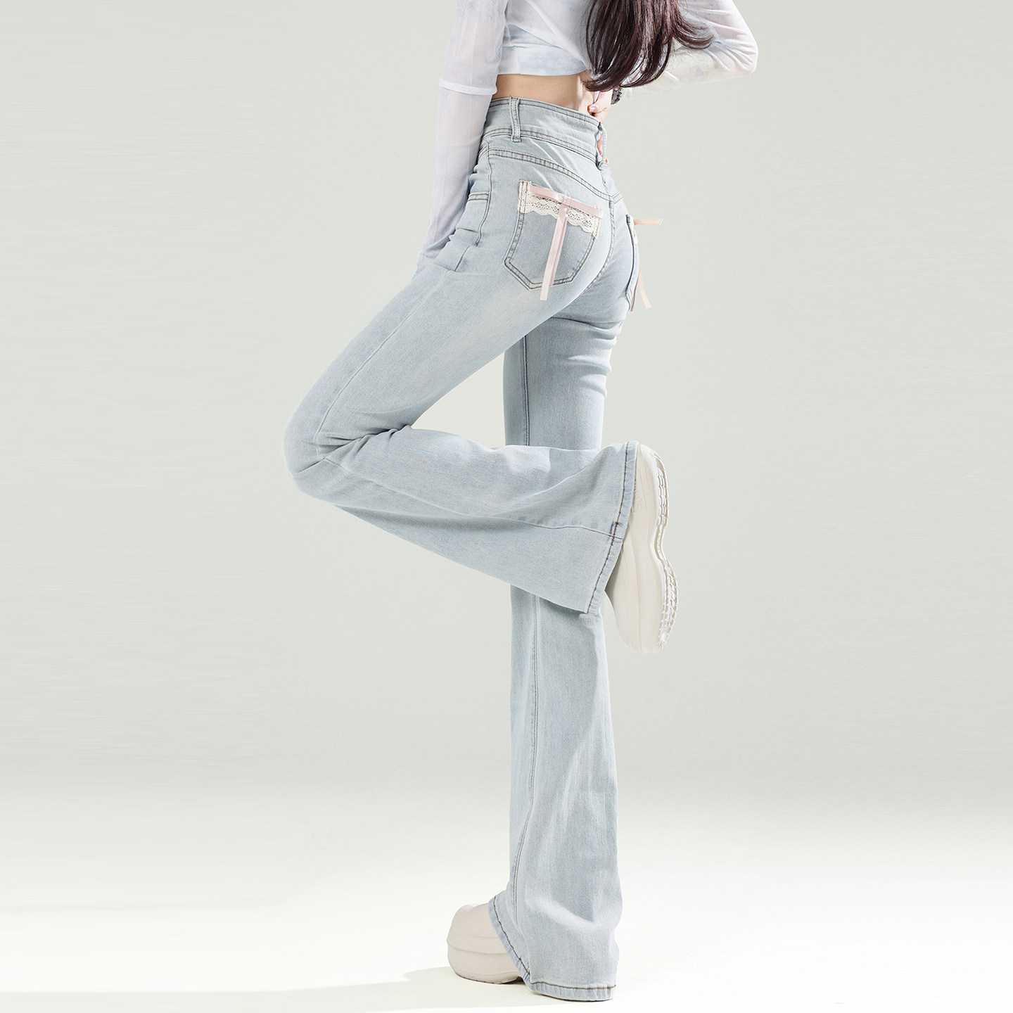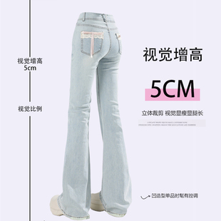 高腰设计感弹力显瘦马蹄裤 女冬季 子 胖mm加绒加厚微喇牛仔裤 特大码