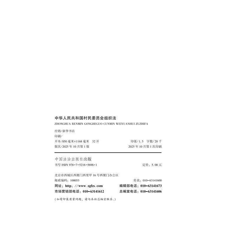 中国法治出版 中华人民共和国村民委员会组织法 中华人民共和国农村集体经济组织法 2025年新修正 社 含草案说明