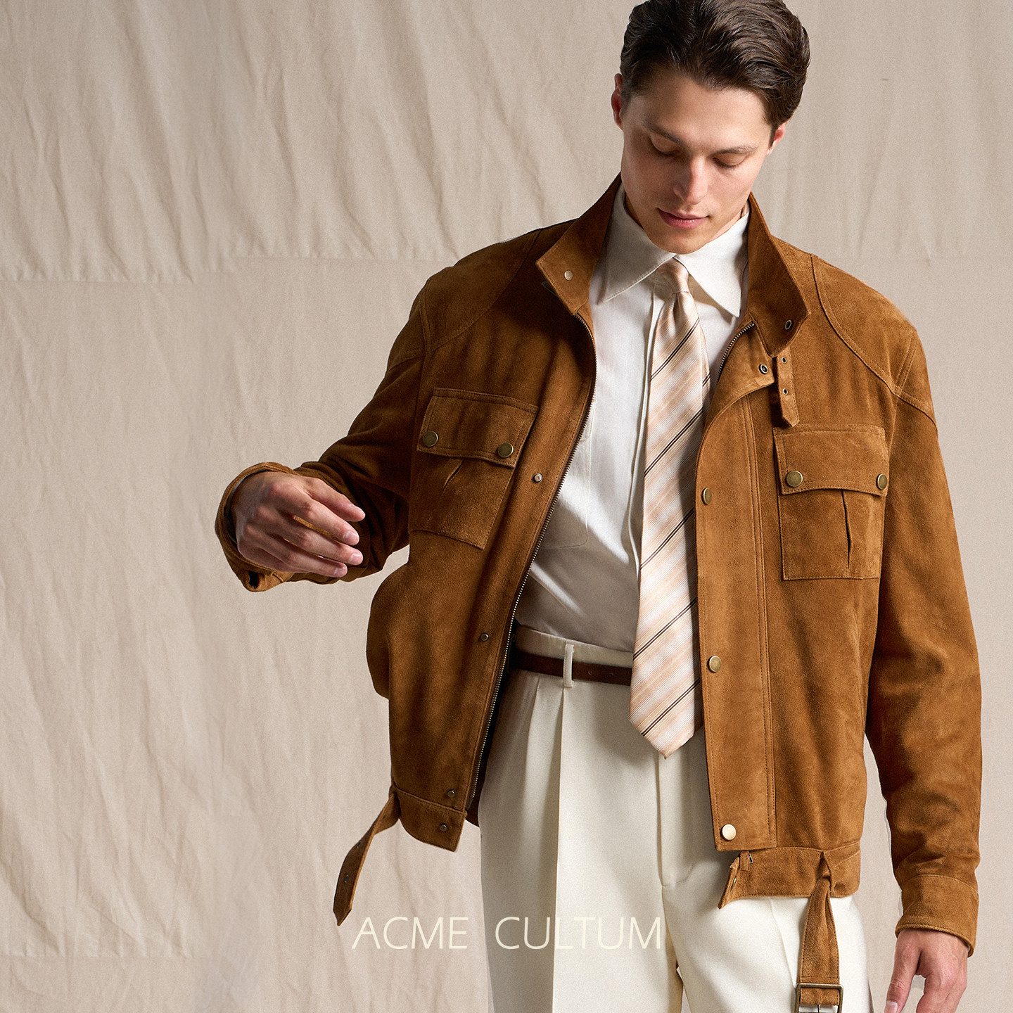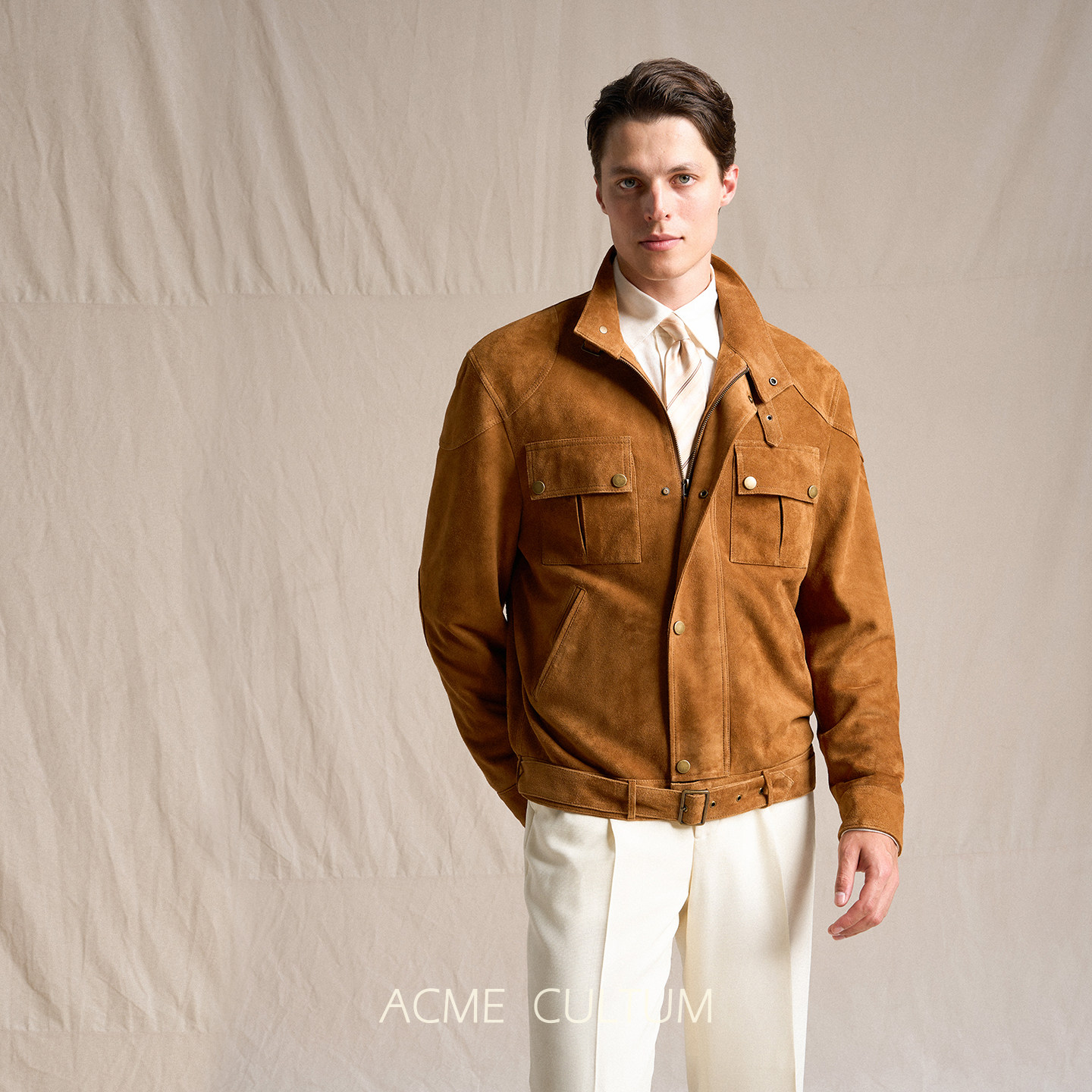 Acme 户外防风机车夹克 cultum山羊皮反绒麂皮立领真皮皮衣男短款