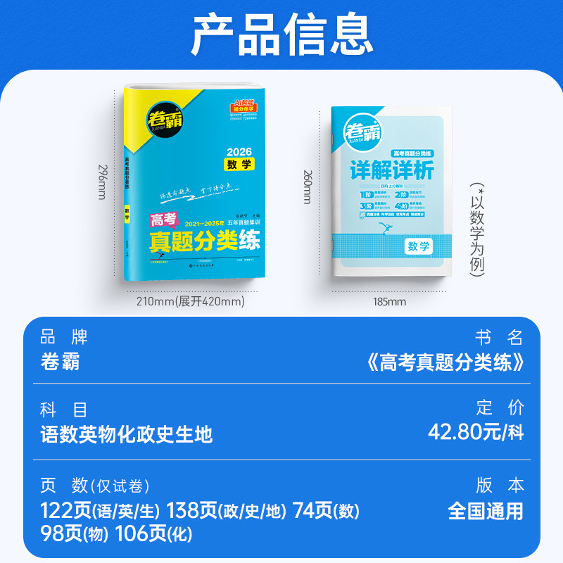2025五年真题集训科目任选附赠答案详解详析全国通用创新真题 2026卷霸高考真题分类练语数英物化生政史地分类练真题2021 正版