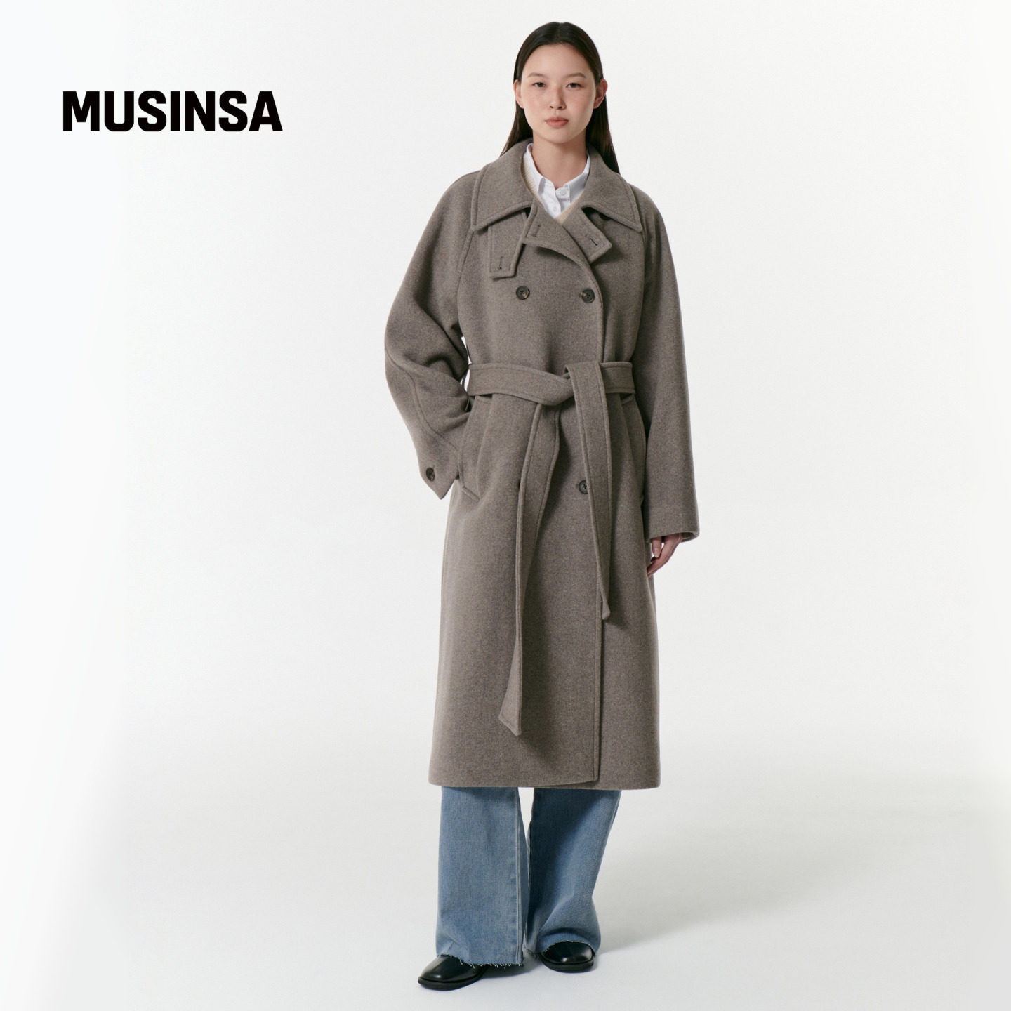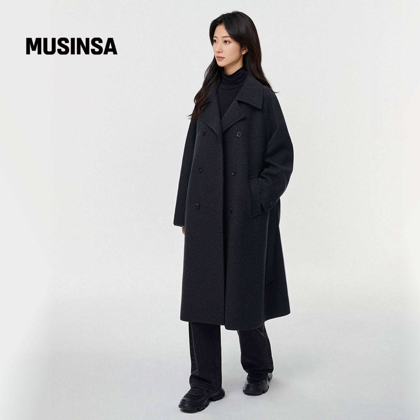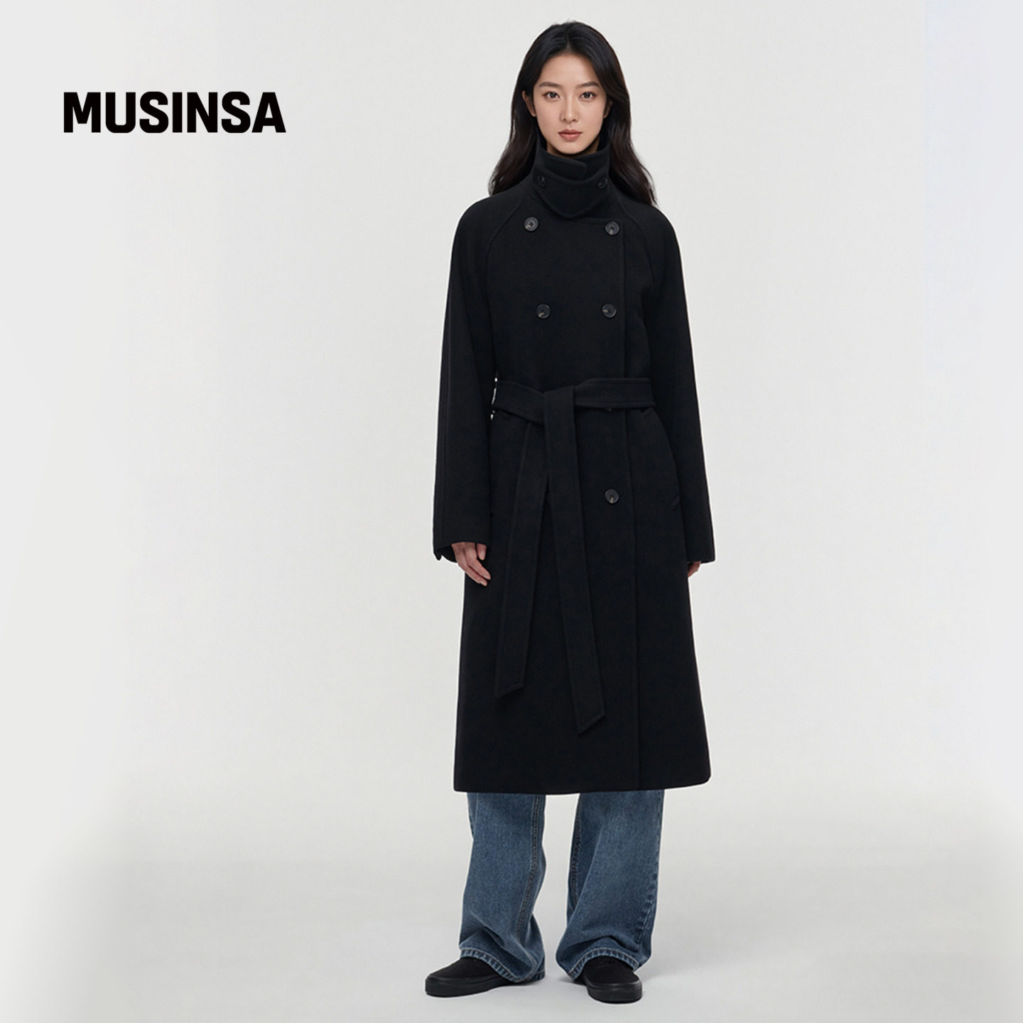 毛呢大衣 女士羊毛混纺双排扣长款 musinsa standard韩国25冬季