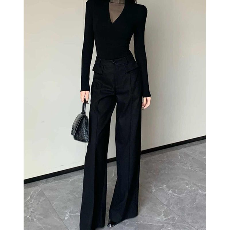 设计感小众百搭显瘦打底衫 修身 上衣A T恤女秋大码 纯棉正肩V领长袖