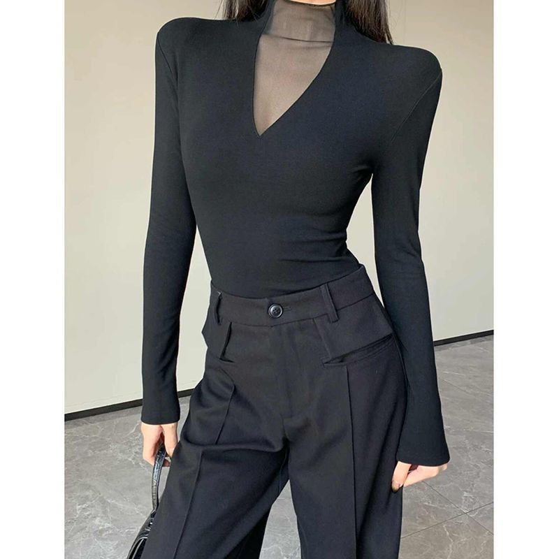 遮肉显瘦打底衫 T恤女秋冬内搭修身 上衣潮 胖mm辣妹半开领长袖 大码