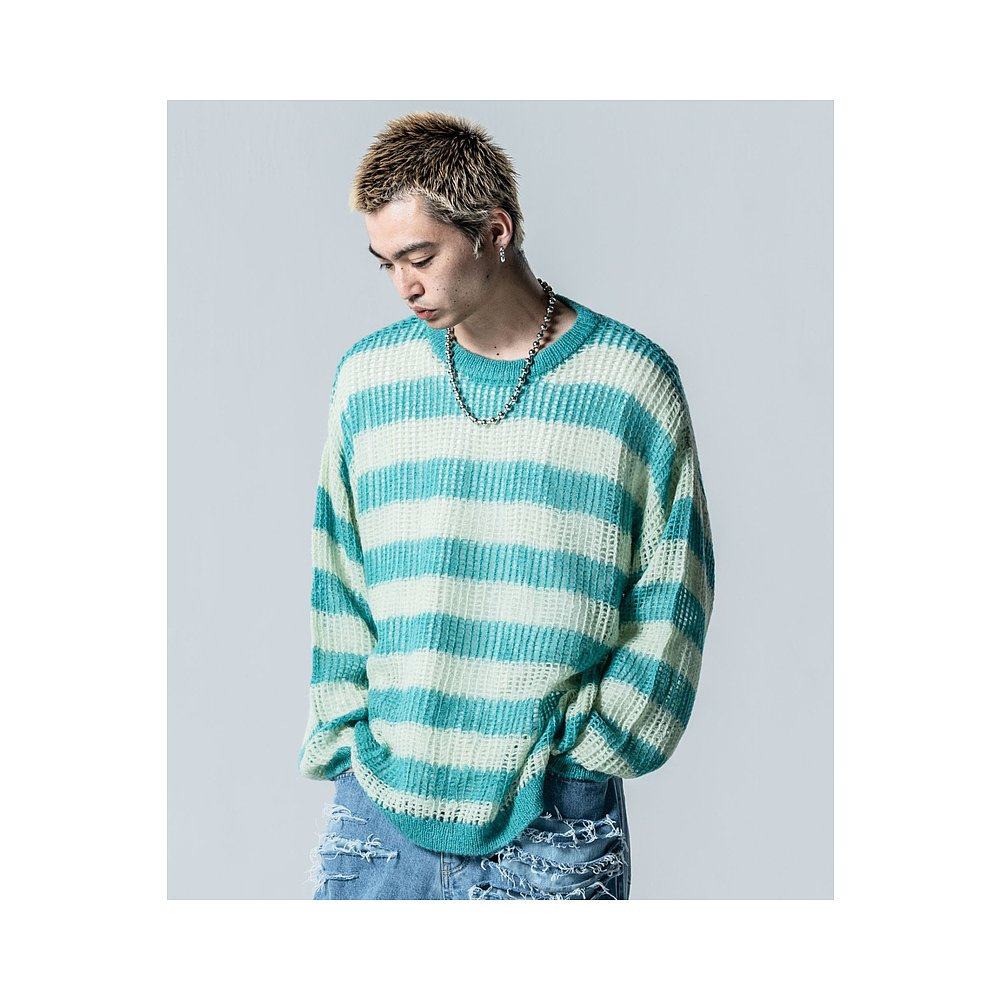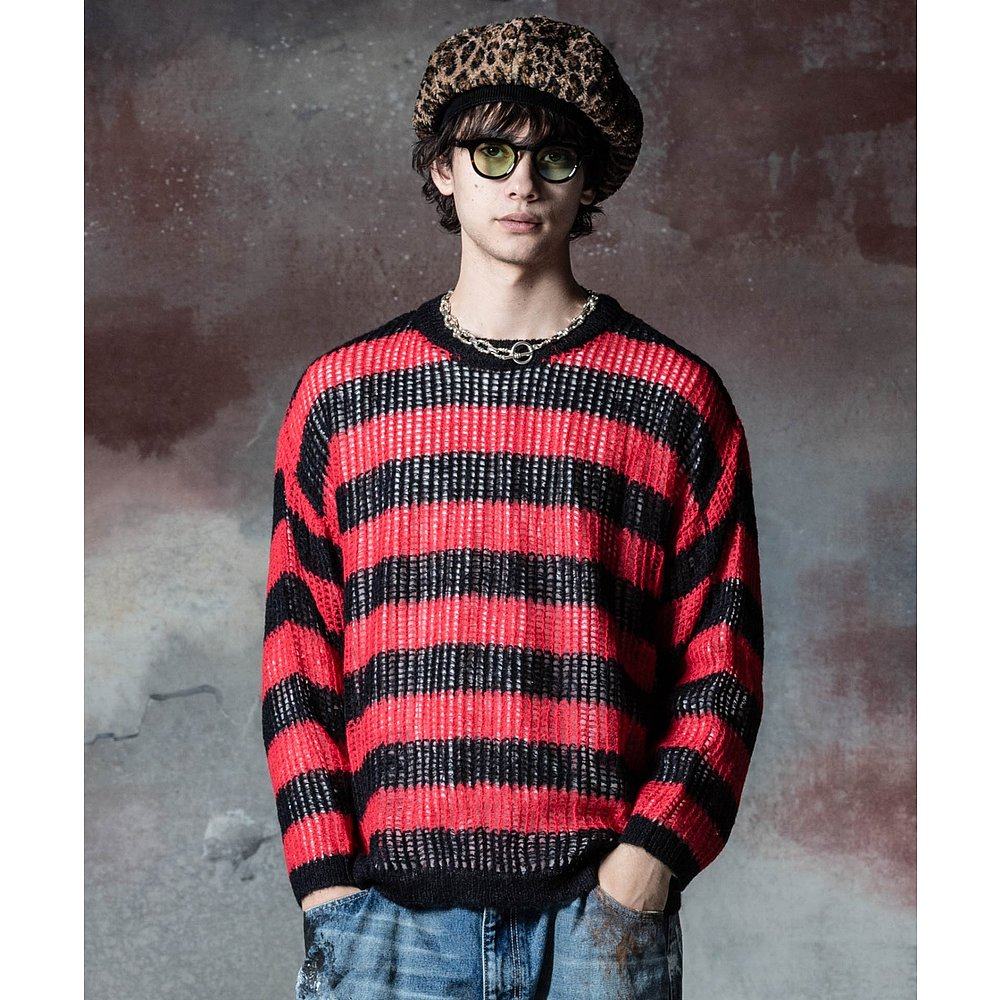 GB0324 1h可退 网格条纹针织衫 男女同款 KNT06羊毛 日本直邮glamb